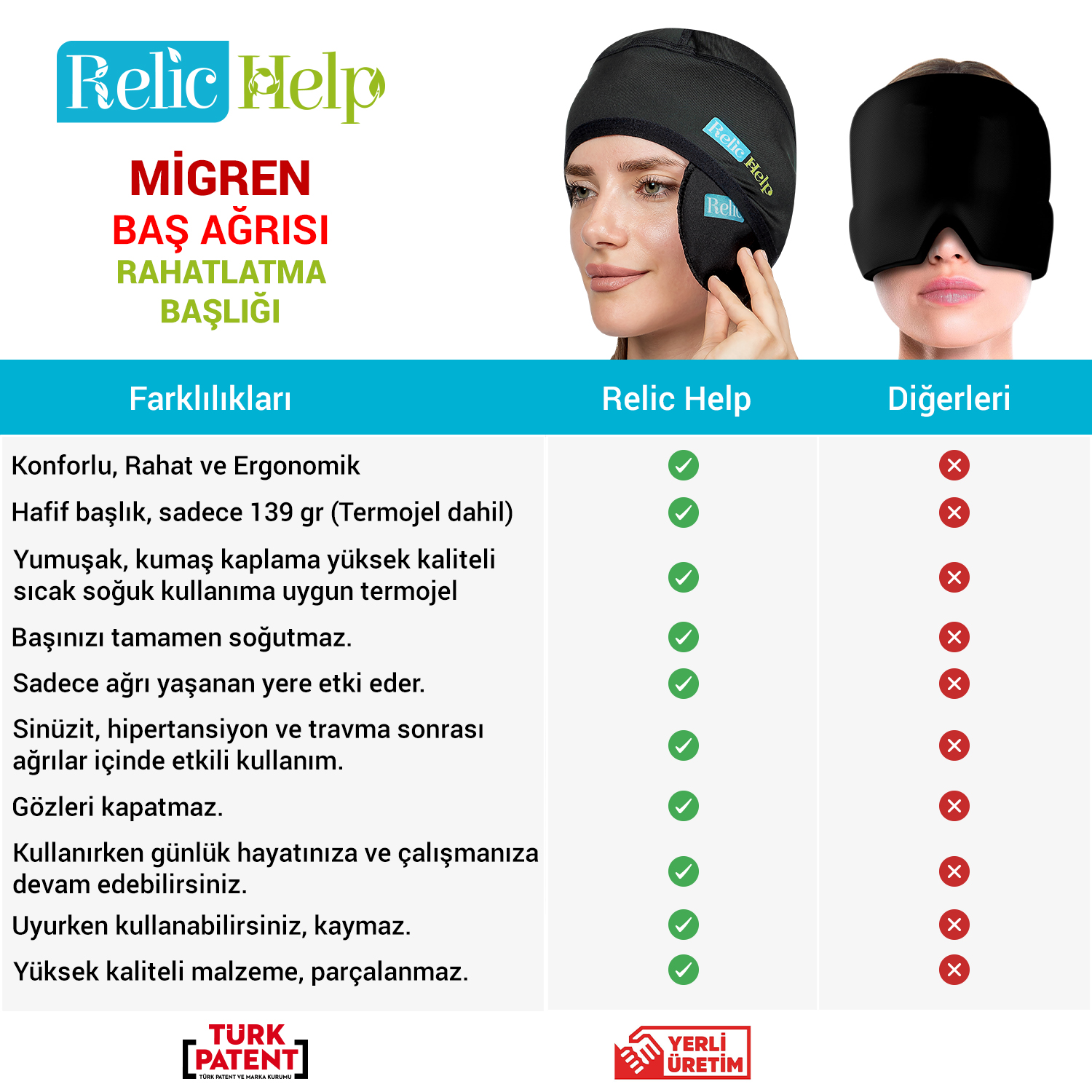 1. Relic Help, konforlu ve yüksek kaliteli bir tasarıma sahip ağrı giderici bir başlıktır. Günlük hayatınızın her anında kullanabileceğiniz bu başlık, kafanızın sadece ağrıyan bölgesine odaklanarak termojel paketlerle tasarlanmıştır.